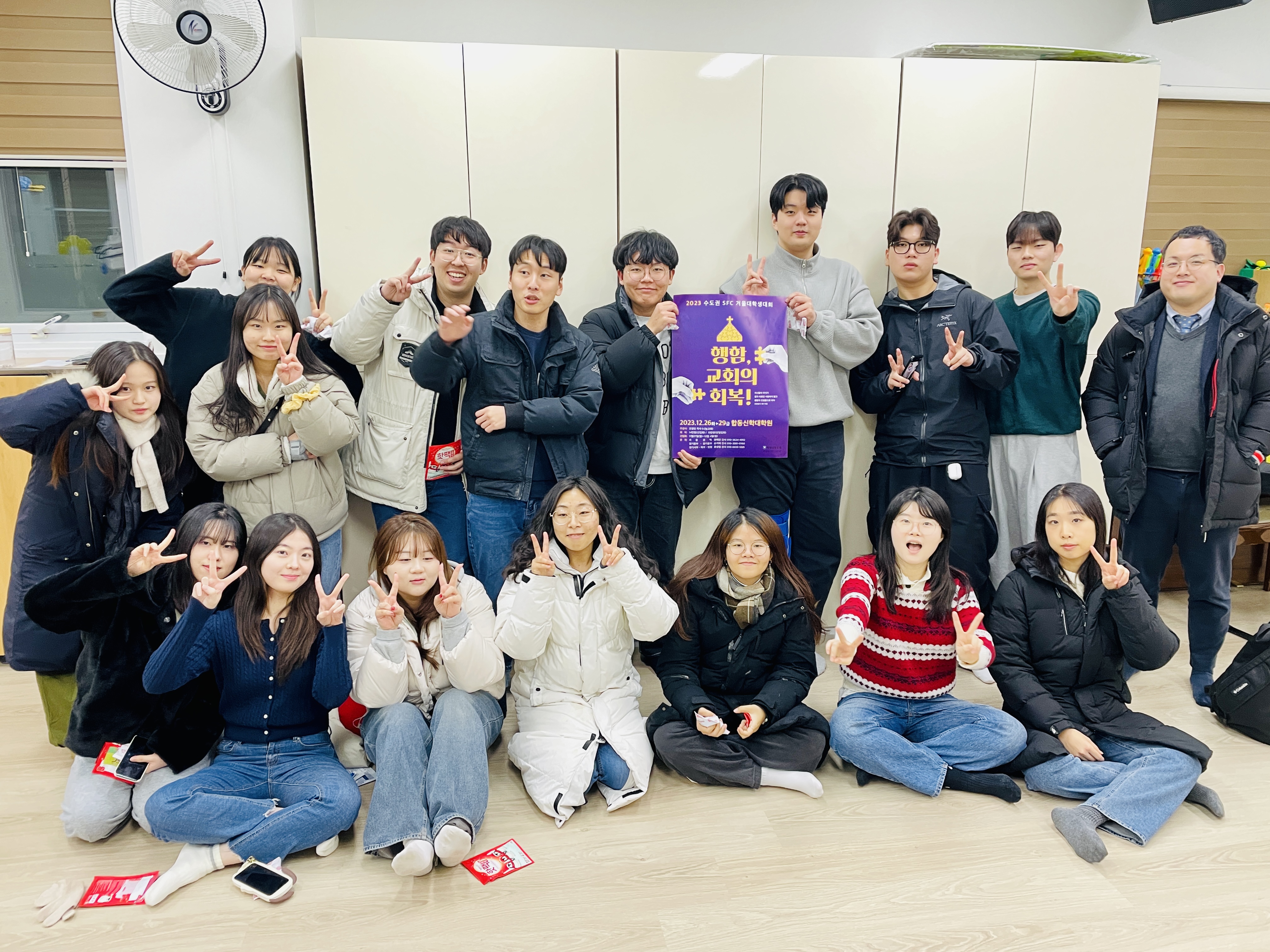 2022년에는 처음 맡은 외대였는데, 1명이 나왔었습니다. 그리고 2023년이 되면서 신입생 4명과 복귀한 3학년까지 해서 7명의 정원으로 모임이 활발해졌습니다. SFC에 참석하는 친구들은 각 지역에서 틴SFC활동을 조금이나마 했거나 고신교회 출신들입니다. 폴란드 어학연수를 마치고 온 4학년 은서(마산성막교회)와 3학년 유진이(울산교회)가 이전부터 활동했던 친구들입니다. 발을 다쳐서 ROTC를 접고 휴학한 찬혁이(서울영천교회)가 지난해 고생이 많았습니다. 아무도 없는 모임을 유지하는 일이 부담스러웠을 겁니다. 외로운 시간을 잘 버텨줘서 고마운 친구입니다. 그리고 신입생은 마산에서 온 철학도 영광이(회원교회)와 부산에서 온 수빈이(초장동교회) 그리고 울산에서 온 컴공생 태민이(미포교회) 마지막으로 전라도 광양에서 온 하은이(광양영주교회)가 있습니다. 2학기에는 은서 동생 희서도 왔습니다.