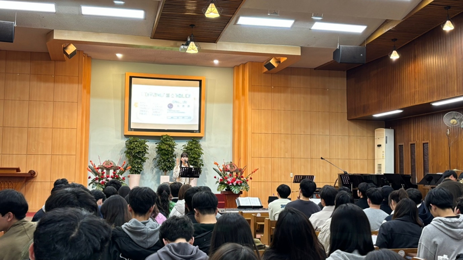 지난 3월 28일 대구경북U 개강큰모임이 신평교회당에서 있었습니다. 오주원 간사님께서 <그리스도 안에서 하나님의 은혜와 우리의 의무>라는 제목으로 메시지를 전해주셨습니다. 올해 전국 주제문인 “거룩한 성도로”를 바탕으로 거룩이 무엇인지, 우리가 어떻게 거룩할 수 있는지를 설명해 주셨습니다. 거룩은 피조물과 구별된 초월적인 신성을 나타내는 말이며, 어떻게 거룩할 수 있는지는 십계명을 통해 알려주셨습니다.