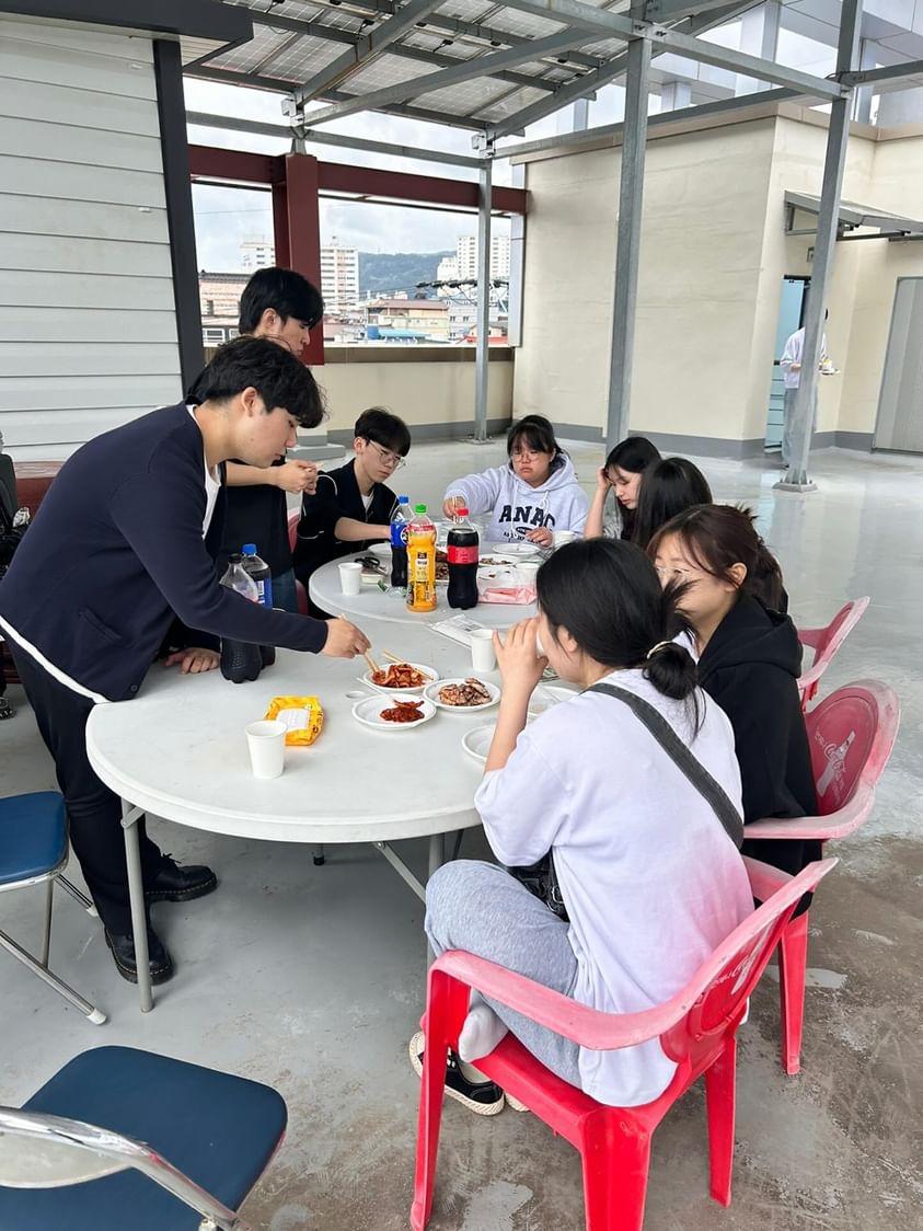 맛있는 고기과 소세지, 음료수, 밥, 고기와 찰떡궁합인 비빔면까지 준비하여 마산성막교회 옥상에서 함께 시원한 바람과 찬양을 들으며 식사하였을 때 아이들이 좋아한 것 같습니다. 또한 찬양시간에 원래 찬양을 정하여 준비하였는데 그 당시에 그냥 게릴라 찬양을 하는것이 어떤가 하는 의견이 나와 좋은 것 같아 즉석으로 운동원들이 원하는 찬양을 함께 부르는 시간을 보냈습니다. 그때도 아이들이 즐겁게 찬양한 것 같습니다!