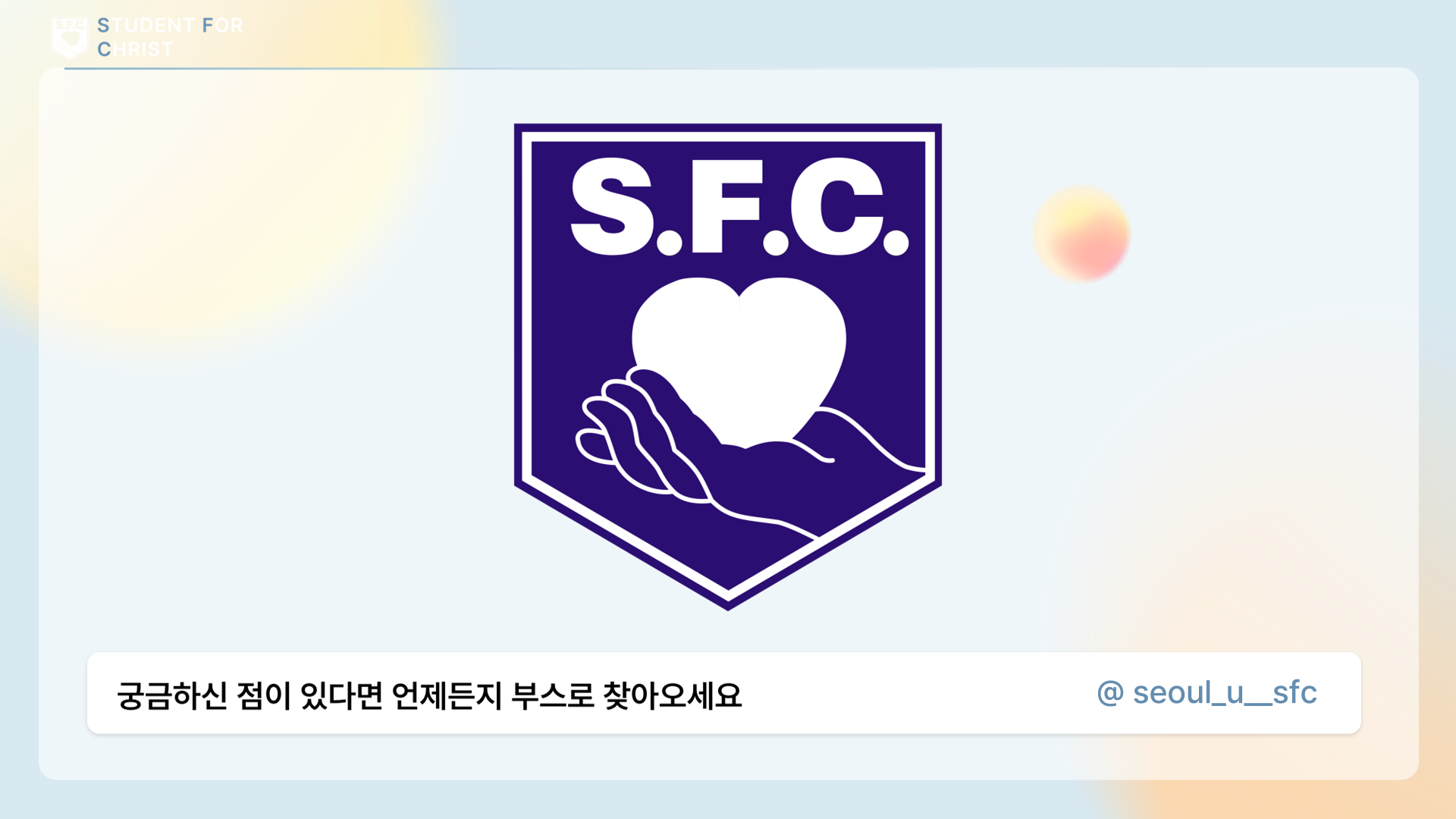 ※ 이 글은 2025년 4월 5일 𝐑𝐞𝐯𝐢𝐯𝐞 𝐧𝐨𝐰 𝐂𝐚𝐦𝐩𝐮𝐬 행사에서 발표된 SFC PR 입니다. SFC 정체성과 방향성을 SFC를 모르는 기독 청년들에게 간단하게 제시하고 소개하는 글 입니다.