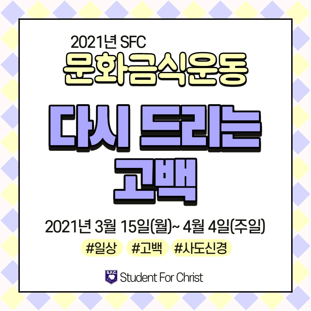 - 내용 : 2021년 SFC문화금식운동 _ 고백 다이어리 작성 '다시 드리는 고백'.