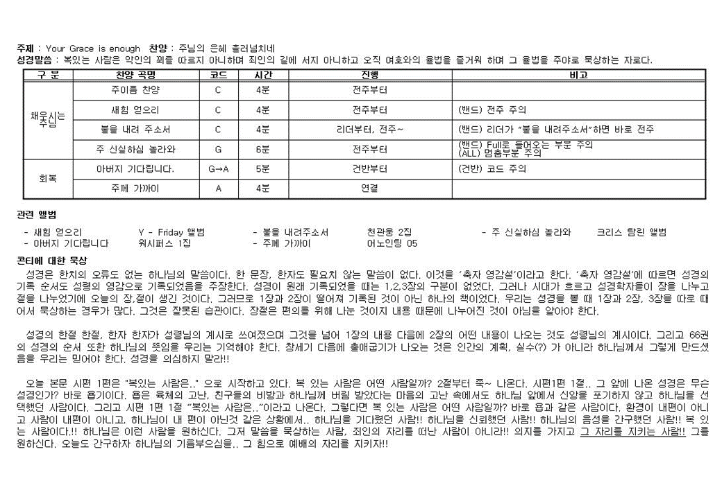 * 찬양팀은 은혜를 흘려 보내는 사람입니다.