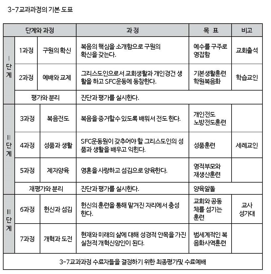 3-7과정은 훈련프로그램이 아닌 양육철학으로 삼는다. 3-7과정의 그리스도인의 성장과정, 교육내용을 받아들이고 그런 철학을 다양한 형태의 운동과 교육 프로그램으로 풀어낸다.