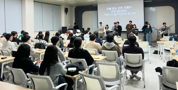 개강큰모임은 경건회로 진행되었습니다. 찬양은 이번에 새롭게 시작한 서울U 찬양팀인 Soul 찬양팀이 함께 해주었고, 강의는 서울중부지부 박현혁 간사님이 강의해 주셨습니다. 팔복이 기록된 당시의 상황과 지금 우리의 상황을 비교하면서, 박해 받던 과거의 선배 그리스도인과 자유롭게 신앙을 가질 수 있는 우리 사이에서 무엇이 진정한 복인지 알고 깨닫는 것이 중요하다는 사실을 알게 되었습니다. 이미 우리는 세상의 소금이고 빛이라는 정체성을 다시금 깨닫고 우리를 소금과 빛으로 불러주신 우리 하나님의 신실하심을 의지하며 부르심에 합당한 삶을 살길 다짐했습니다. 한 학기 동안 배울 산상수훈의 말씀을 통해서 배울 하나님께서 주실 진정한 복과 소금과 빛의 삶을 알아가며 체득하길 마음 모아 기도 했습니다.