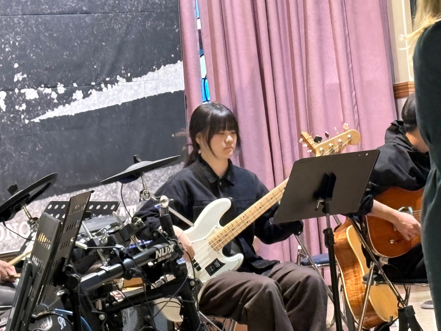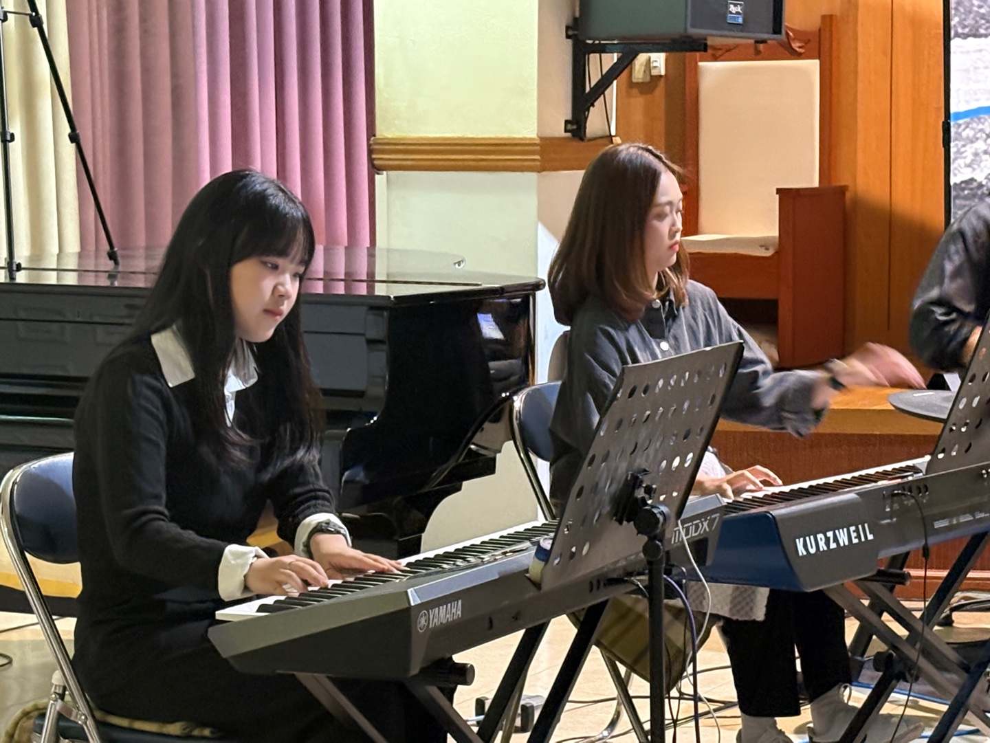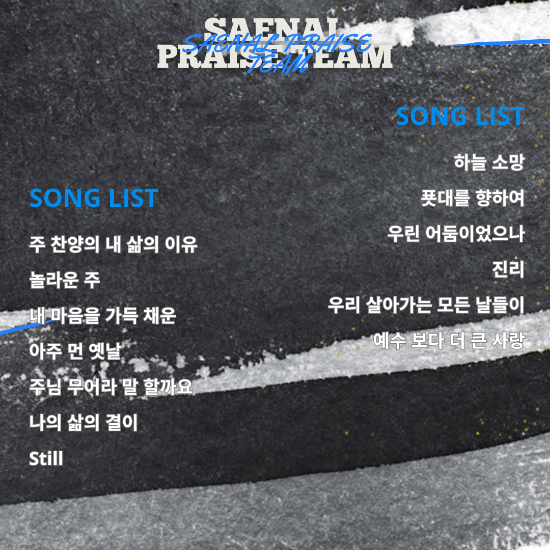 A. SFC 찬양팀으로서 강령을 빼먹을 수 없겠지요. 강령으로 우리의 정체성을 확인하고, 기도함으로 콘서트를 시작하였습니다. 모든 찬양에 앞서 새벽날개 단원들 모두가 찬양의 내용이 자신의 삶에 어떻게 녹아있는지 나누고 함께 찬양하였습니다. 또한 회중들과 함께 찬양하고 싶은 마음으로 사전에 추천곡을 받았고, 그 곡에 대한 나눔도 받았습니다. 그 중 2곡 골라 추천한 사람의 나눔도 나누고 함께 찬양하였습니다. ‘주와 함께 살아가야해’, ‘함께 지어져 가네’를 찬양하였습니다.