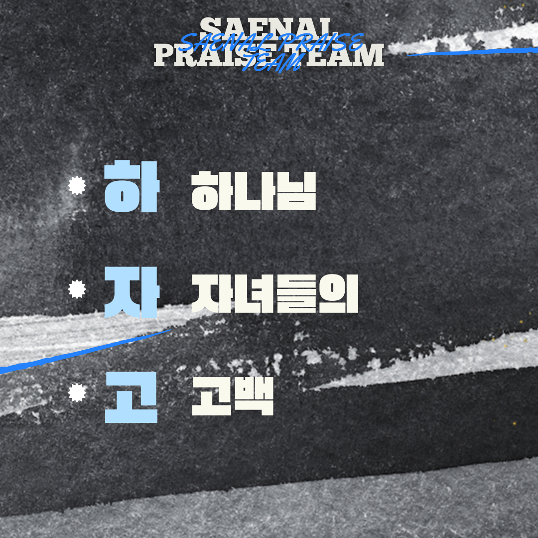 A. 이번 찬양콘서트의 주제는 ‘하자고(하나님 자녀들의 고백)’ 라고 정하였습니다. 기획 단계에서 운동원들이 각자 하고 싶은 주제를 가져와 회의하였는데, 모든 주제가 좋았고 어느 하나 빠짐없이 콘서트에 담고 싶다는 생각이 들었습니다. 각자가 가져온 주제를 '찬양을 통해 자신이 고백하고 싶은 내용'으로 만들어보자는 취지에서, 우리 모두의 고백, 즉 하나님 자녀들의 고백이라고 이름 붙이게 되었습니다. 기회가 된다면 이 고백 하나하나를 주제로 삼아 찬양을 준비해 보고 싶기도 합니다.^^