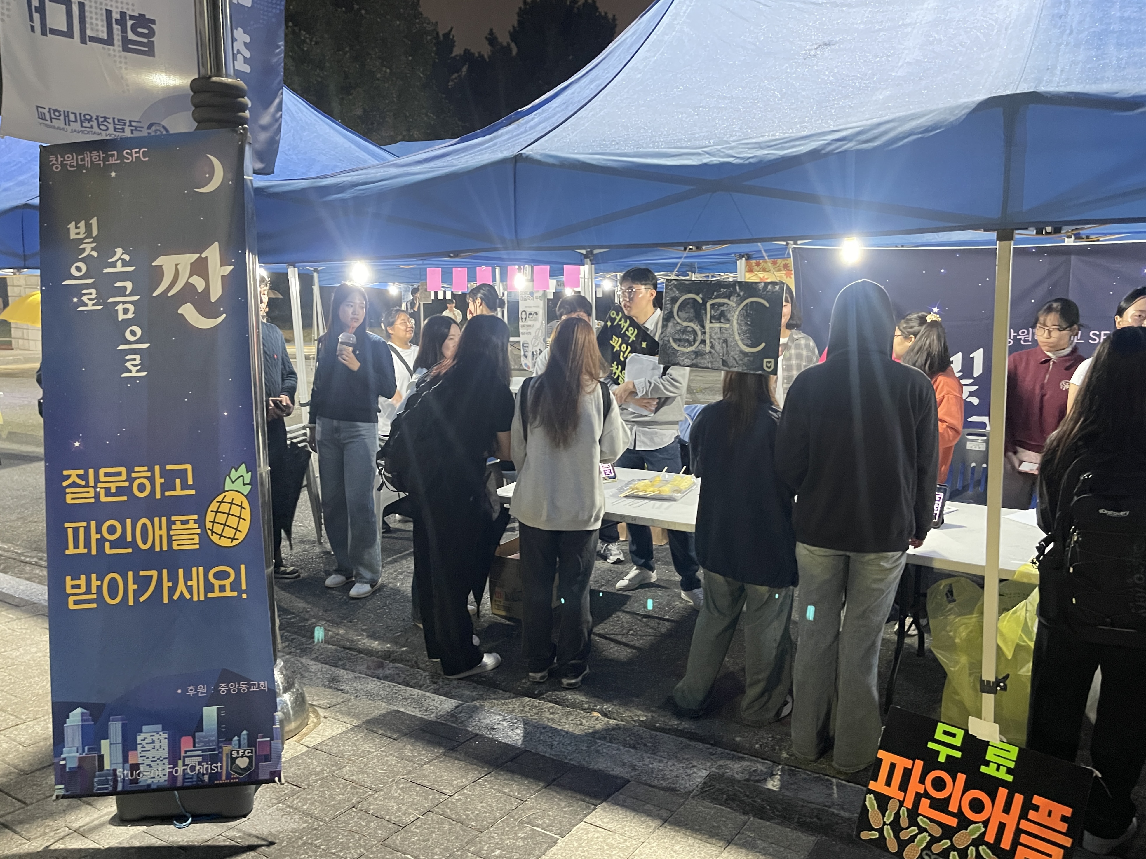 2024년 가을, 어김없이 캠퍼스에는 축제가 열립니다. 축제 가운데서 어떻게 하면 빛과 소금의 삶을 살 수 있을지 고민하고 운동했던 창원대 SFC의 이야기를 소개합니다!