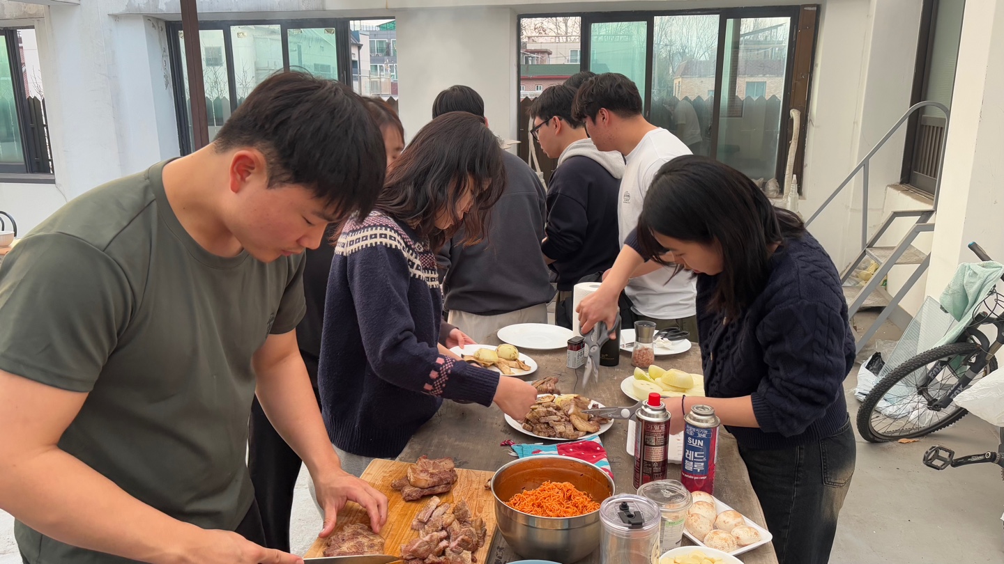 저녁으로는 훈련원 옥상에서 🍖바베큐🍖파티를 했습니다!! 야외에서 함께 먹은 고기는 더욱 맛있었습니다⸌☻ັ⸍