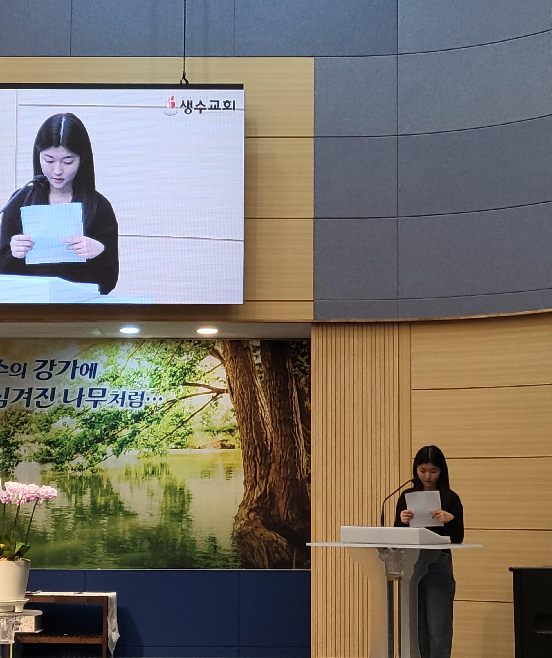 저는 안산 생수교회를 다니고 있는 열 일곱 살 박소윤이라고 합니다.
