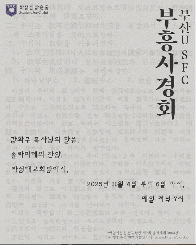 부산 U-SFC 2025년 2학기 부흥사경회 후기